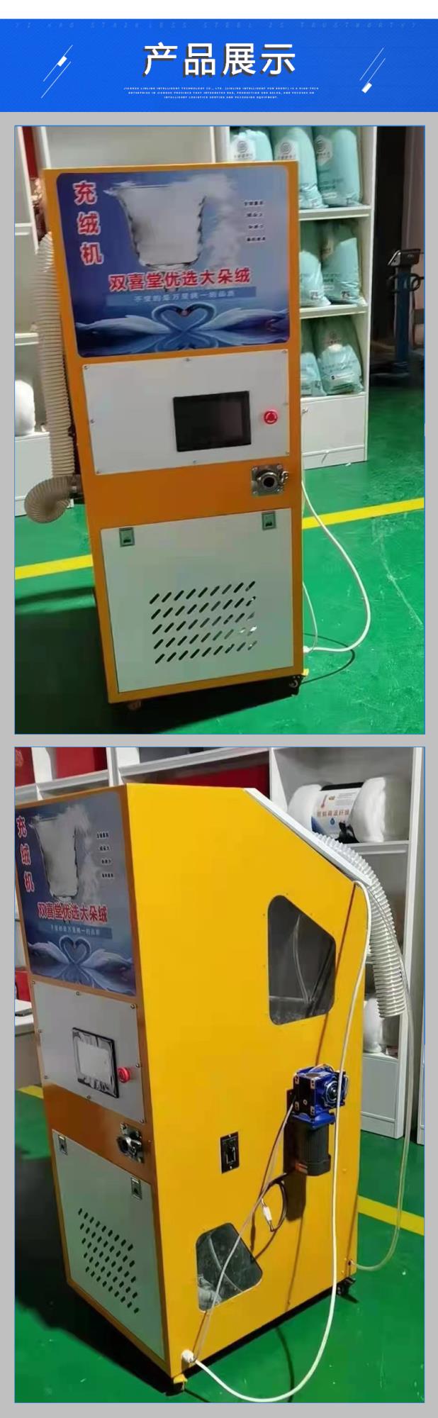 本設(shè)備可成功除掉充絨中80%的金屬,該機(jī)型100%有效的回收出口中的三絨,確保環(huán)境衛(wèi)生。適合在商店作為羽絨被現(xiàn)充現(xiàn)賣設(shè)備。